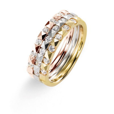 Alliance ou bague or 18 carats: jaune, blanc, rose et diamants.