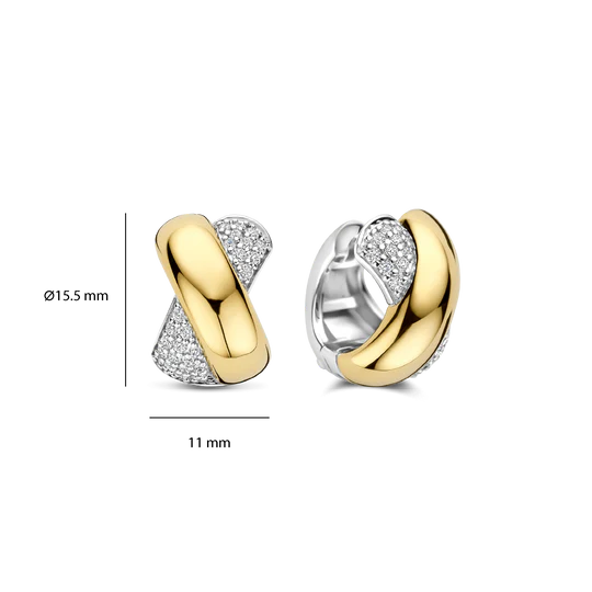 Les créoles Bold Crossover sont fabriquées en argent sterling 925/1000 de haute qualité et ont un diamètre de 15,5 mm. Le puissant design crossover comporte deux bandes entrelacées : une bande est finie par une surface lisse et polie plaquée or 18 carats, tandis que l’autre est entièrement sertie de pierres de zirconium. Cette combinaison crée un contraste riche et un jeu de lumière saisissant à chaque mouvement.