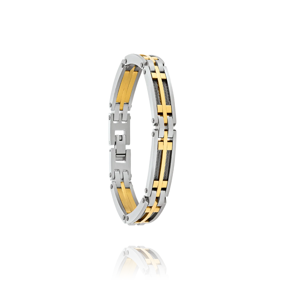 Bracelet acier bicolore doré et câbles: Jourdan collection Priam JH110025B