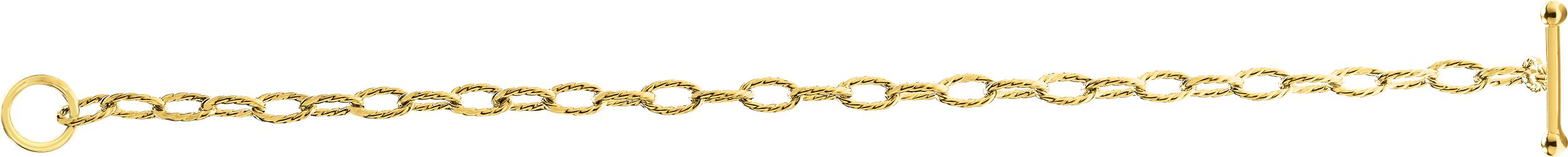 Bracelet en or jaune 750/1000, anneaux creux ovales légèrement strillés, fermeture par un bâtonnet et un anneau. Longueur de 18cm.