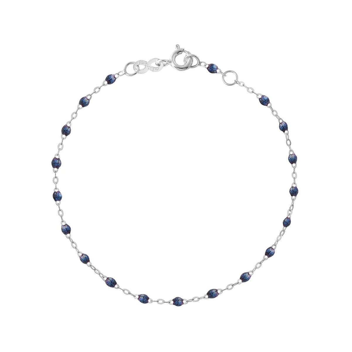 Bracelet gigi CLOZEAU maille en or jaune 18 carats et perles de résine couleur bleu nuit, longueur de 17 cm avec un anneau de réglage à 1cm. Fermeture anneau ressort.