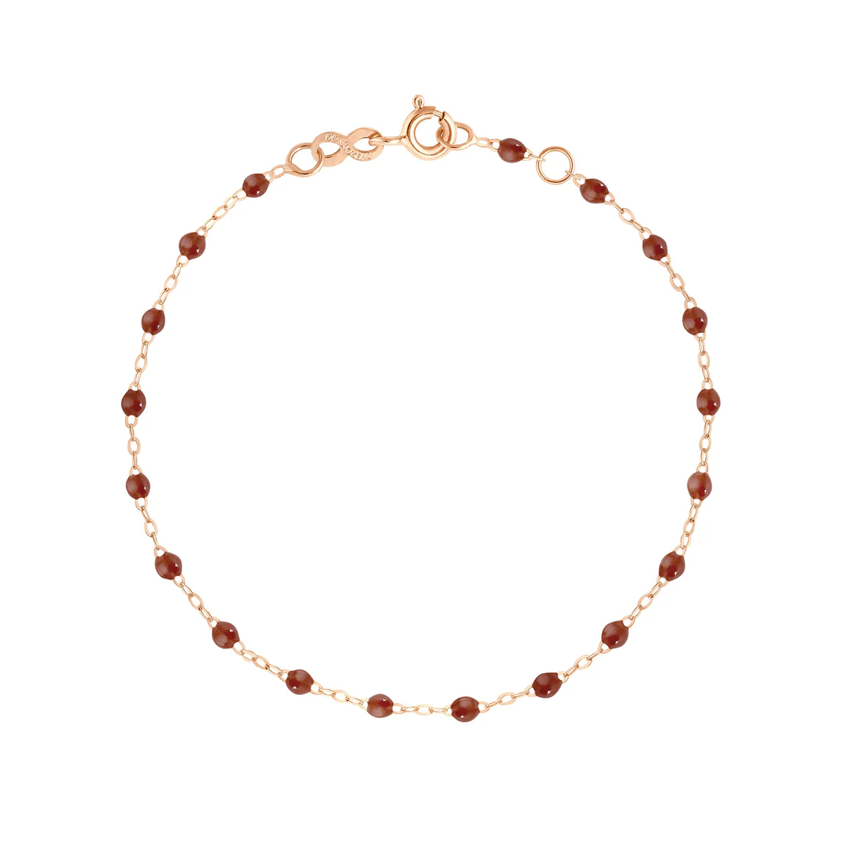 Bracelet gigi CLOZEAU maille en or rose 18 carats et perles de résine couleur Moka, longueur de 17 cm avec un anneau de réglage à 1cm. Fermeture anneau ressort.