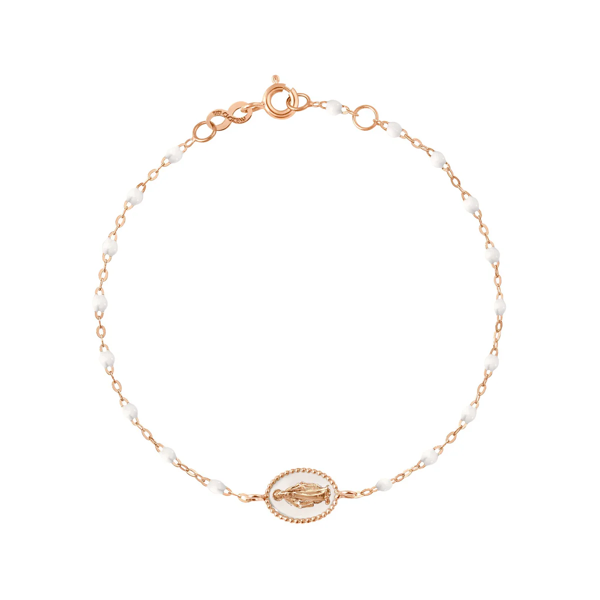 Bracelet or rose 750/1000 résine blanche et madone au centre: Collection Madone gigi CLOZEAU B3VI004R0117