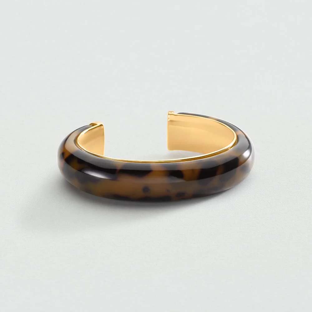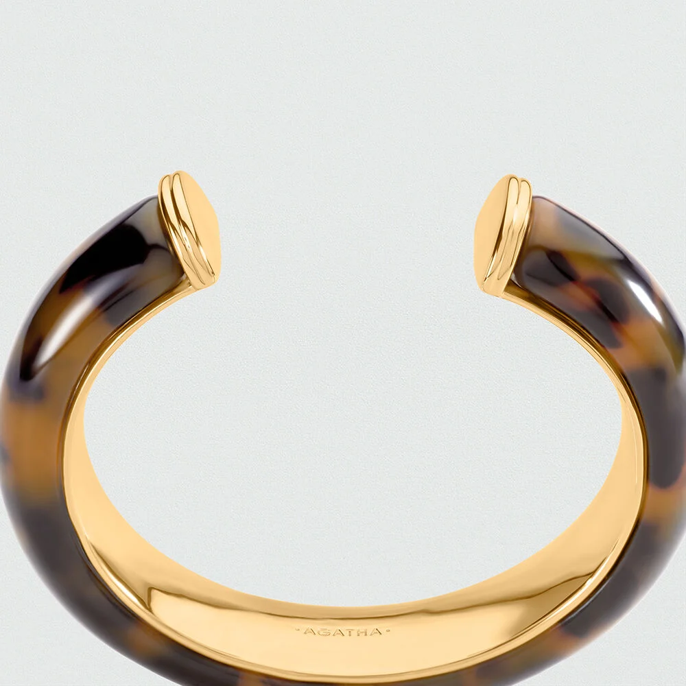 Ce jonc de notre collection PALAIS ROYAL, imaginé à Paris, est réalisé en laiton doré à l’or 750/1000e – 18 carats et acétate. Il est disponible en couleur Léopard. Produit iconique d’Agatha, ce jonc apporte une touche de couleur à vos tenues.