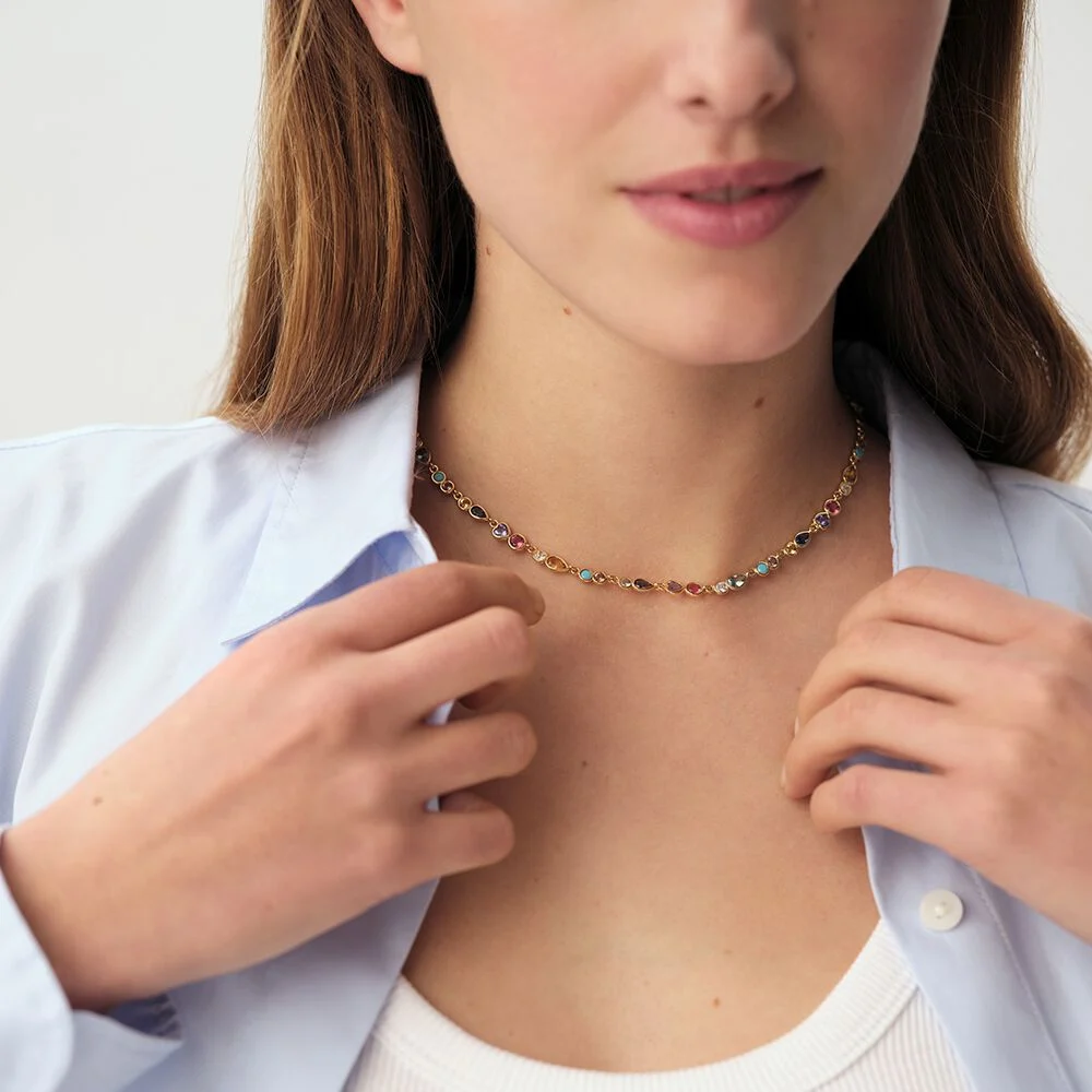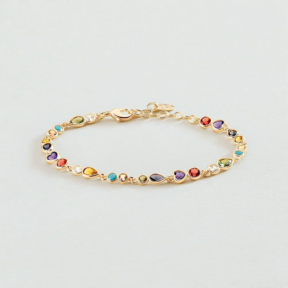 Ce bracelet de notre collection CANDY, imaginé à Paris, est réalisé en laiton doré à l’or 750/1000e et orné d’oxydes de zirconium. Il est disponible en version multicolore ou cristal. Avec son contour orné d’oxydes en forme de coussin ou de goutte, ce bracelet permet un look chic, tout en restant discret. Il peut être associé à d’autres bijoux de notre collection permanente CANDY. Ce bijou mesure 155 mm auquel s’ajoute une rallonge de 30 mm