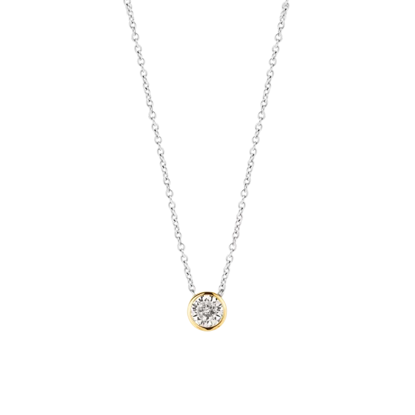 Ce collier TI SENTO – Milano chaine argent 925/10000, 3845ZY/42 avec un centre rond en oxyde de zirconium taille brillante. longueur 42cm avec 5 anneaux de réglage.