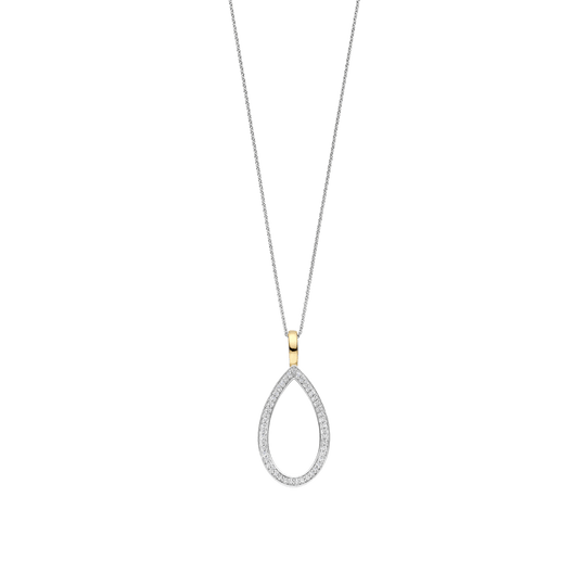 Ajoutez une touche raffinée avec ce pendentif en argent plaqué or TI SENTO 6850ZY. Confectionnée en argent 925/1000, cette forme allongée et ouverte en forme de goutte d’eau est pavée de zircons cubiques blancs taille brillant et encadrée d’une élégante bélière plaquée or jaune. L’interaction de l’or, de l’éclat et de la forme sculpturale donne à cette pièce une élégance sans effort qui complète à la fois les looks décontractés et raffinés. Suspendu à une fine chaîne, il repose magnifiquement le long de l’encolure, parfait porté seul ou superposé à des pendentifs plus courts pour une touche personnelle. Sans nickel et hypoallergénique, il allie un vernis intemporel à un confort durable. Le pendentif est livré avec un délicat collier en chaîne argentée.