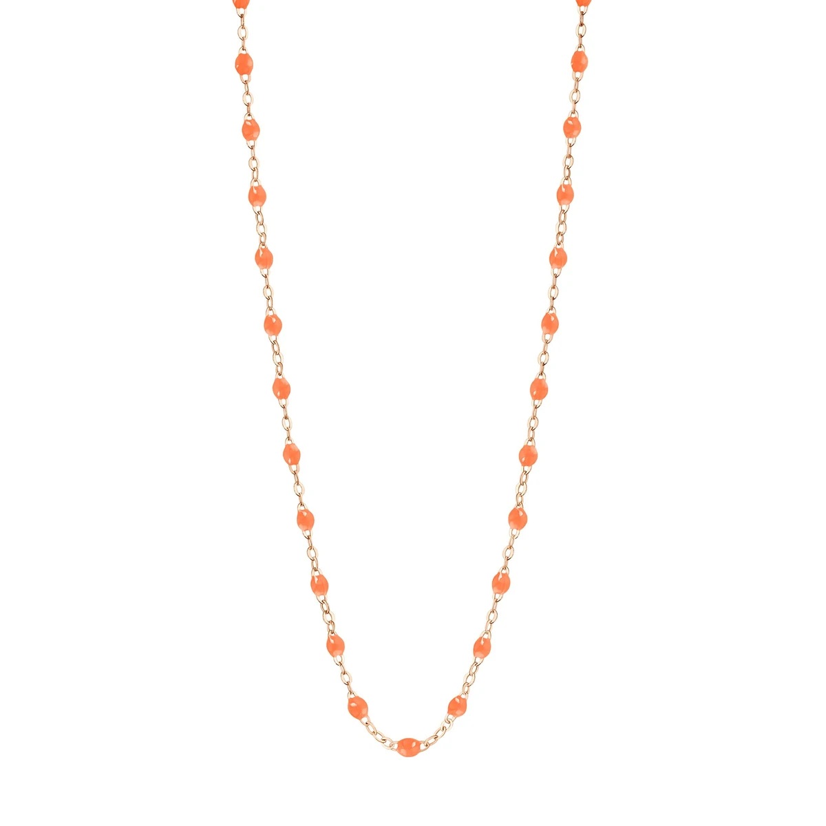 Collier gigi CLOZEAU maille en or rose 18 carats et perles de résine couleur orange fluo, longueur de 45 cm avec un anneau de réglage à 2cm. Fermeture anneau ressort.