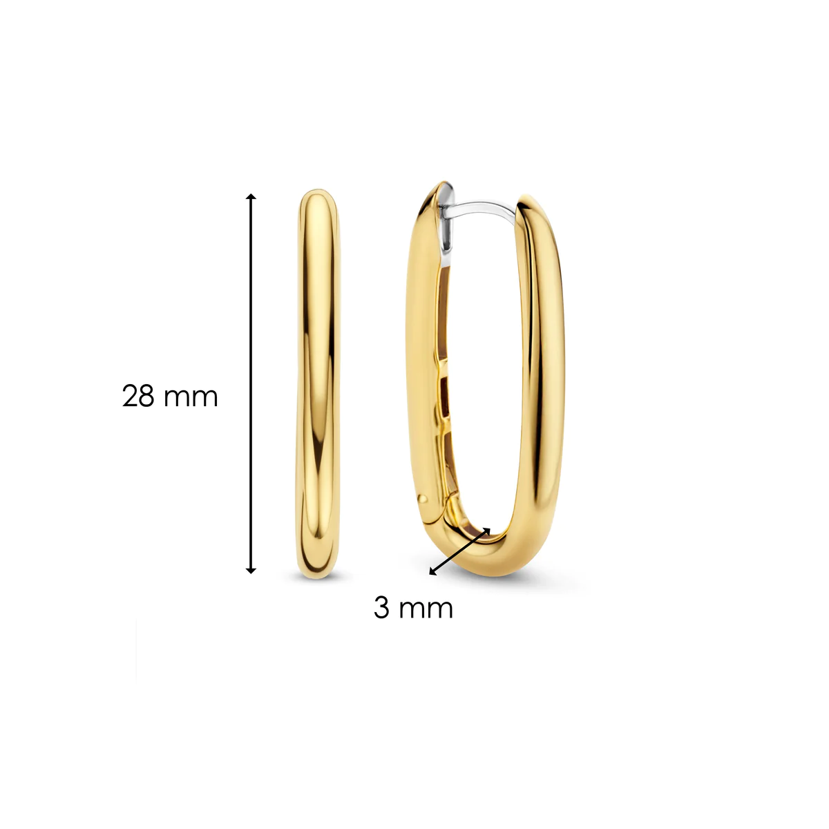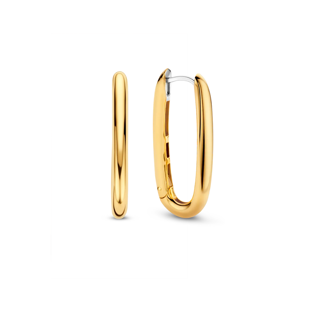 Ces grandes boucles d’oreilles TI SENTO – Milano plaquées or argent 7902SY ont une forme ovale mince. Les boucles d’oreilles sont fabriquées en argent sterling 925/1000 et plaquées or jaune 3 microns.