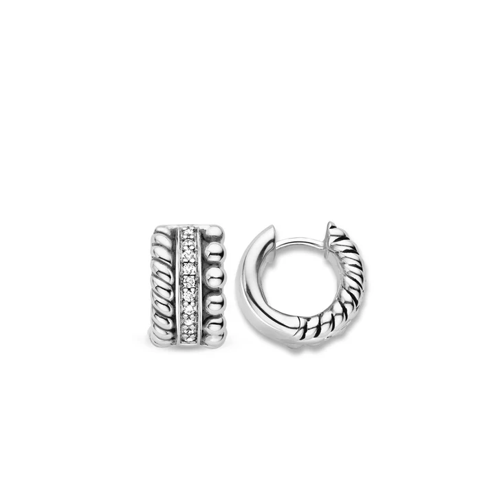 Cette paire de boucles d’oreilles TI SENTO en argent rhodié 925/1000 s’est inspirée de toute la gamme TI SENTO, qui a été fusionnée en un seul article éblouissant. Elles sont recouvertes d’une épaisse couche de platine pour les protéger et les garder lumineux et serties d’oxydes de zirconium.