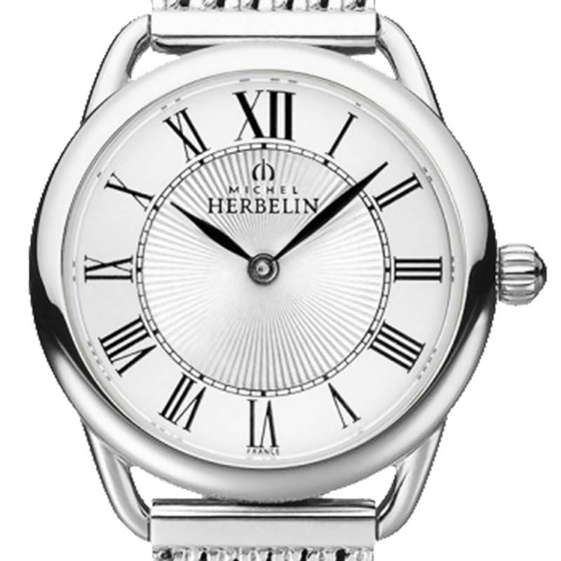 Des lignes courbes et une touche de modernisme pour cette collection Equinoxe à la fois citadine et classique. Cette montre Michel HERBELIN est habillée d’un cadran blanc double cercle guilloché imprimé de chiffres romains et d’une boîte en acier 316L. Montée sur un bracelet maille milanaise en acier. Mouvement à quartz Suisse Ronda 751, verre saphir inrayable plat.