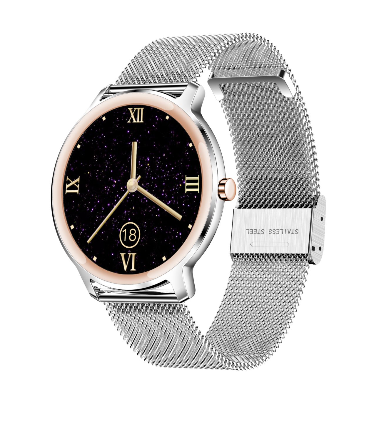 Montre SMARTY mixte – Elégance SW018 – Boitier rond en métal – Bracelet milanais en acier inoxydable – Étanchéité IP67 : 1ATM – Temps de veille de 30 jours – compatible Android 4.4 / IOS 9 ou supérieur – chargeur : oui – Portée Bluetooth 10 mètres maxi