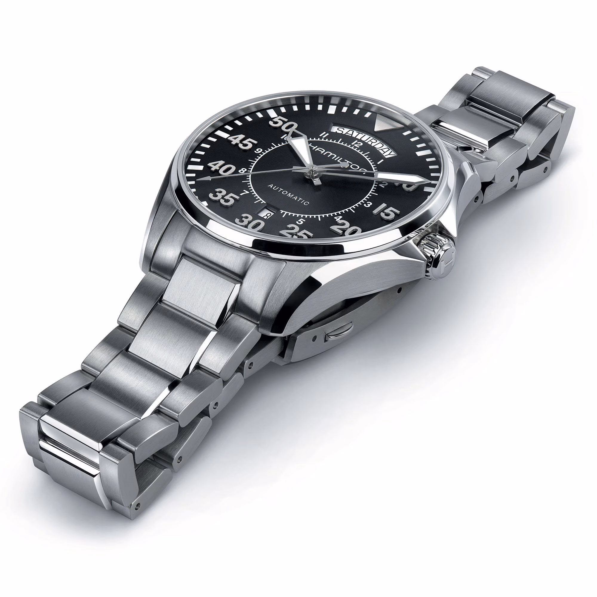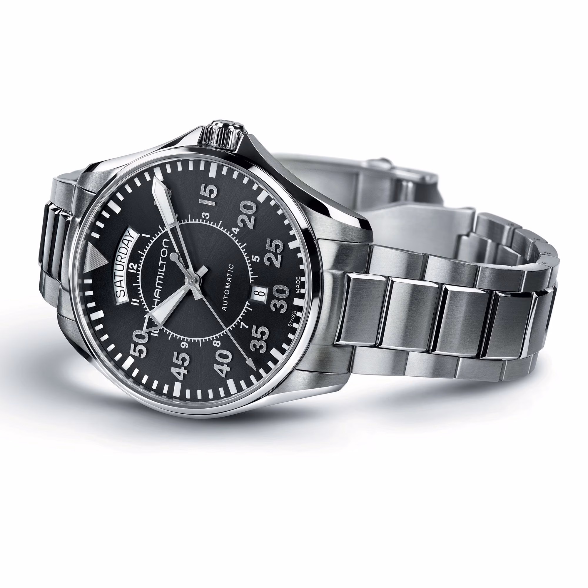 Il serait impossible de recréer les sensations des premiers aviateurs, ces pionniers des airs qui pilotaient au tournant du XXe siècle, mais Hamilton peut au moins vous offrir l’esthétique d’alors, créée avec des matériaux modernes, notamment l’acier inoxydable et le verre saphir. Ajoutez un mouvement automatique et un boîtier de 42 mm aux proportions parfaites, et vous obtenez cette interprétation contemporaine d’une montre vintage.