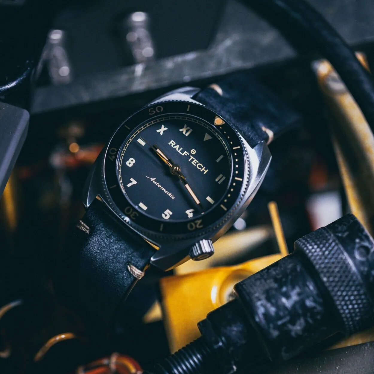 Insert de lunette Aluminium anodisé noir avec triangle de repère et pointeur luminescent SuperLuminova® Old Radium