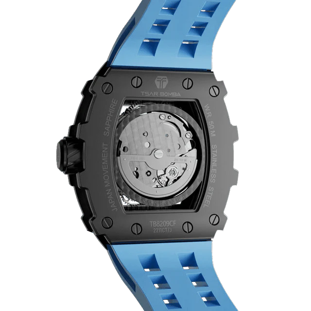 Montre en fibre de carbone Tsar Bomba: Série Élémentaire Automatique TB8209CF04 FKM bleu